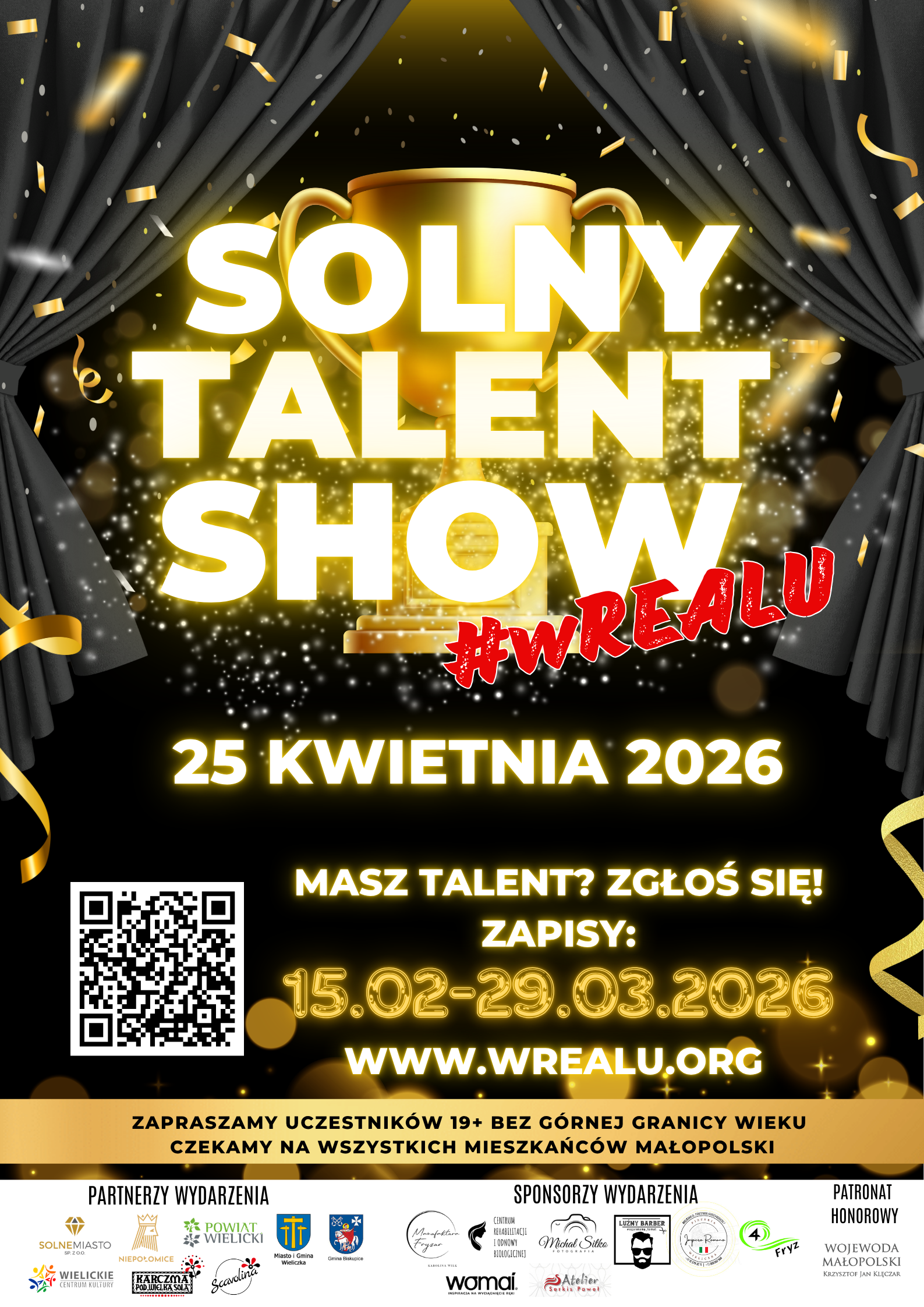 Solny Talent Show #wRealu to ogólnodostępne wydarzenie kulturalno-artystyczne skierowane do osób dorosłych od 19. roku życia, bez górnej granicy wieku, w tym seniorów oraz osób z niepełnosprawnościami z województwa małopolskiego.